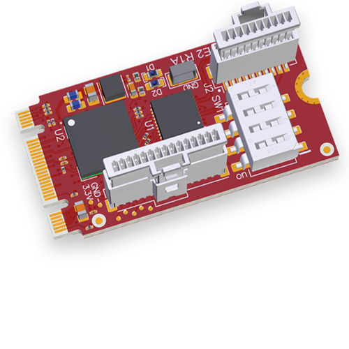 M.2 Dual Serial I/O with two RS-232/422/485 ports and twelve GPIO lines. Full -40° to +85°C operating range.